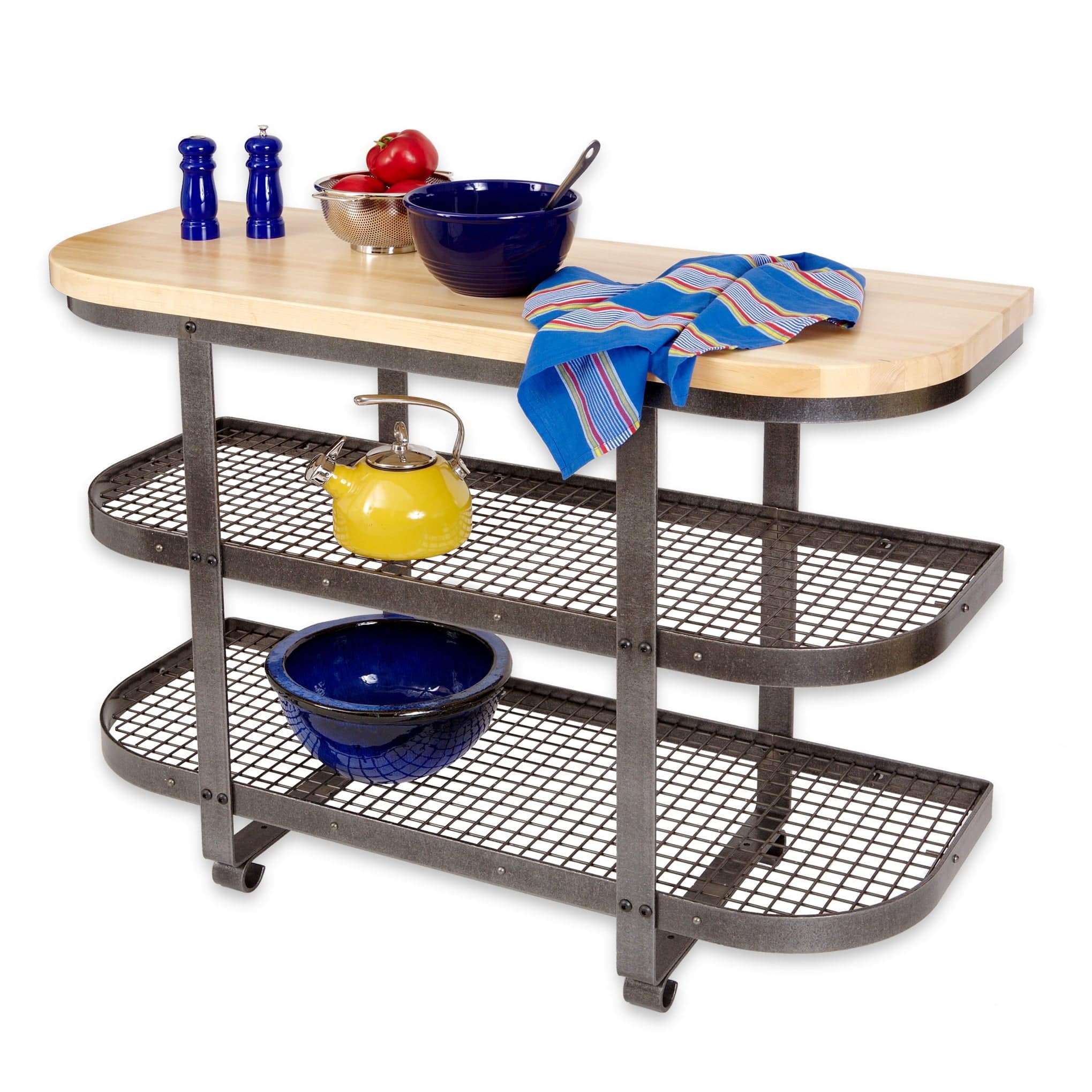 Handcrafted in the USA, the Enclume Baker’s Sideboard Base has two lower shelves with metal grids for holding bowls, pans, and small kitchen appliances. The large butcher block surface is made of Eastern maple and supported by the base of hammered steel. Despite the large size, the Baker’s Sideboard Base is easy to assembly and movable. The locking, non-marring casters allow you to use as it a serving unit or a portable bar and it moves from kitchen to dining room and back again with ease. From tarts to tortes, the Baker’s Sideboard Base makes baking effortless. The Baker’s Sideboard Base is similar to the Baker’s Sideboard except without the upper shelf and hanging rack. Constructed of superior hot rolled, high carbon, steel, and Enclume's Signature Hammered Steel finish with a protective clear coating to deliver our expected beauty, durability, and strength for lasting value and enjoyment.
