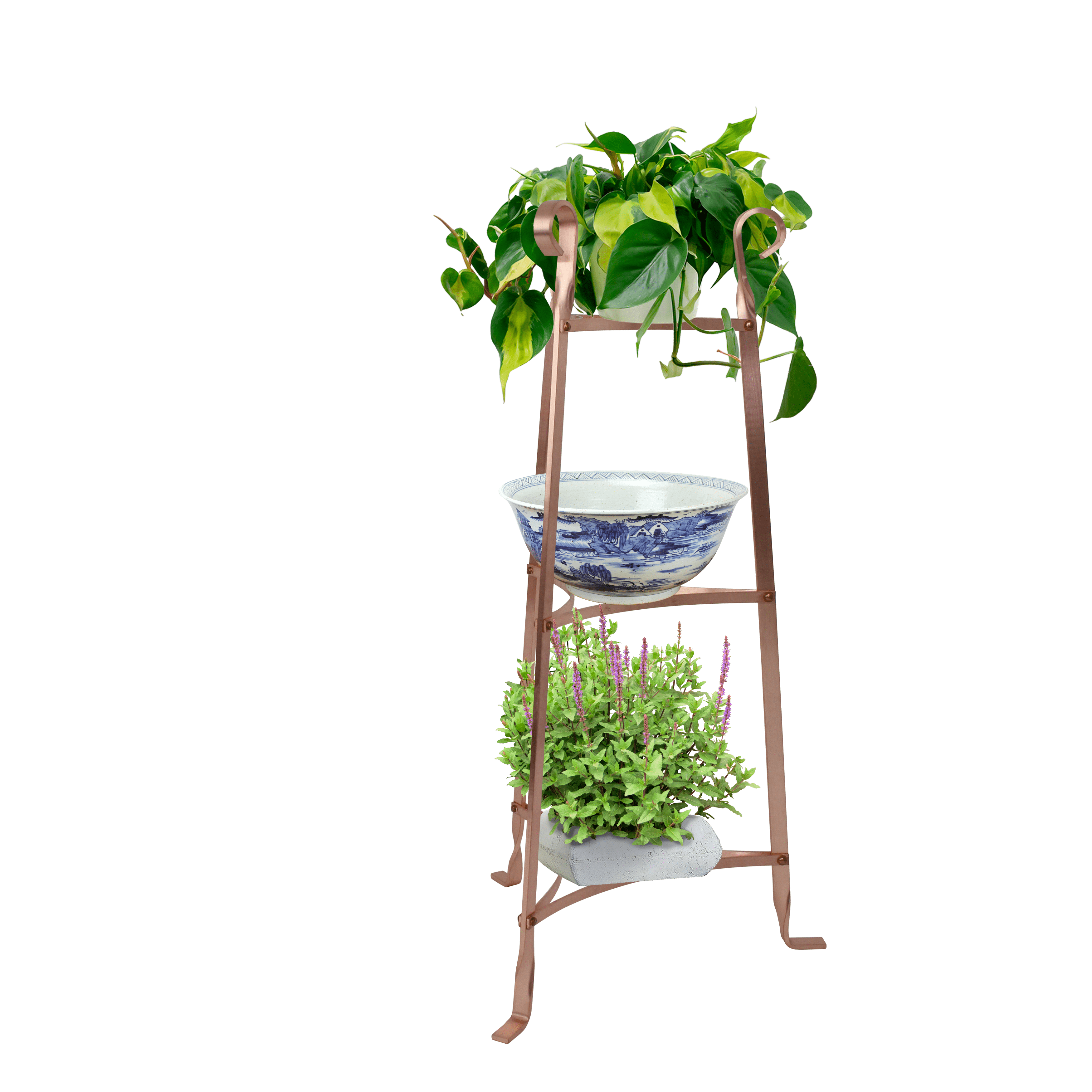 Handcrafted in the USA, this Enclume 3-Tier Designer Stand is one of our best selling stands. Beautifully designed, this tapered stand is 33.5" tall and incredibly versatile. It is great in the Kitchen, in Outdoor Living Spaces, or just about anywhere. It displays and organizes plants, cookware, bakeware, pots, pans, herbs, pictures or flowers. Use it as a pot rack or organizer when wall or ceiling space is not available. Each rack is forged from solid Copper using traditional French metal working techniques. It comes fully assembled and is cold riveted for strength and durability. The Solid Copper finish is beautiful and authentic. These stands also come in a Hammered Steel Finish. For custom sizes or questions, contact Enclume Design Products directly.