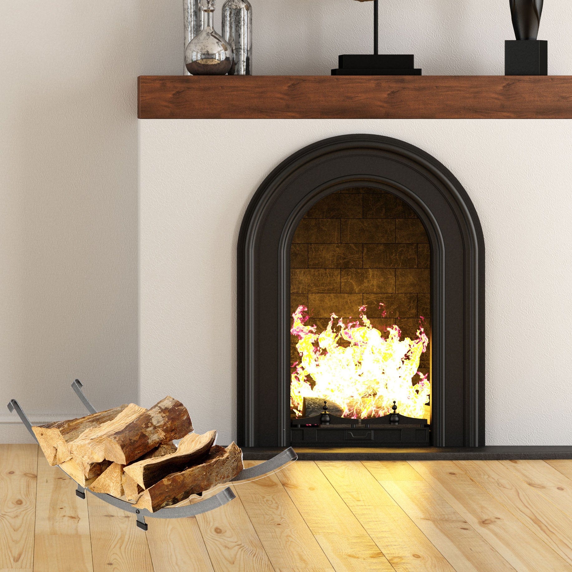 Handcrafted in the USA, this Enclume arch basket log rack features a clean, traditional design. Short in stature but tall on storage, with hand-forged rolled ends and holds many hours of warmth for your home. This original design has Enclume's Signature Hammered Steel finish and a protective clear coating to deliver our expected beauty, durability and strength for lasting value and enjoyment.