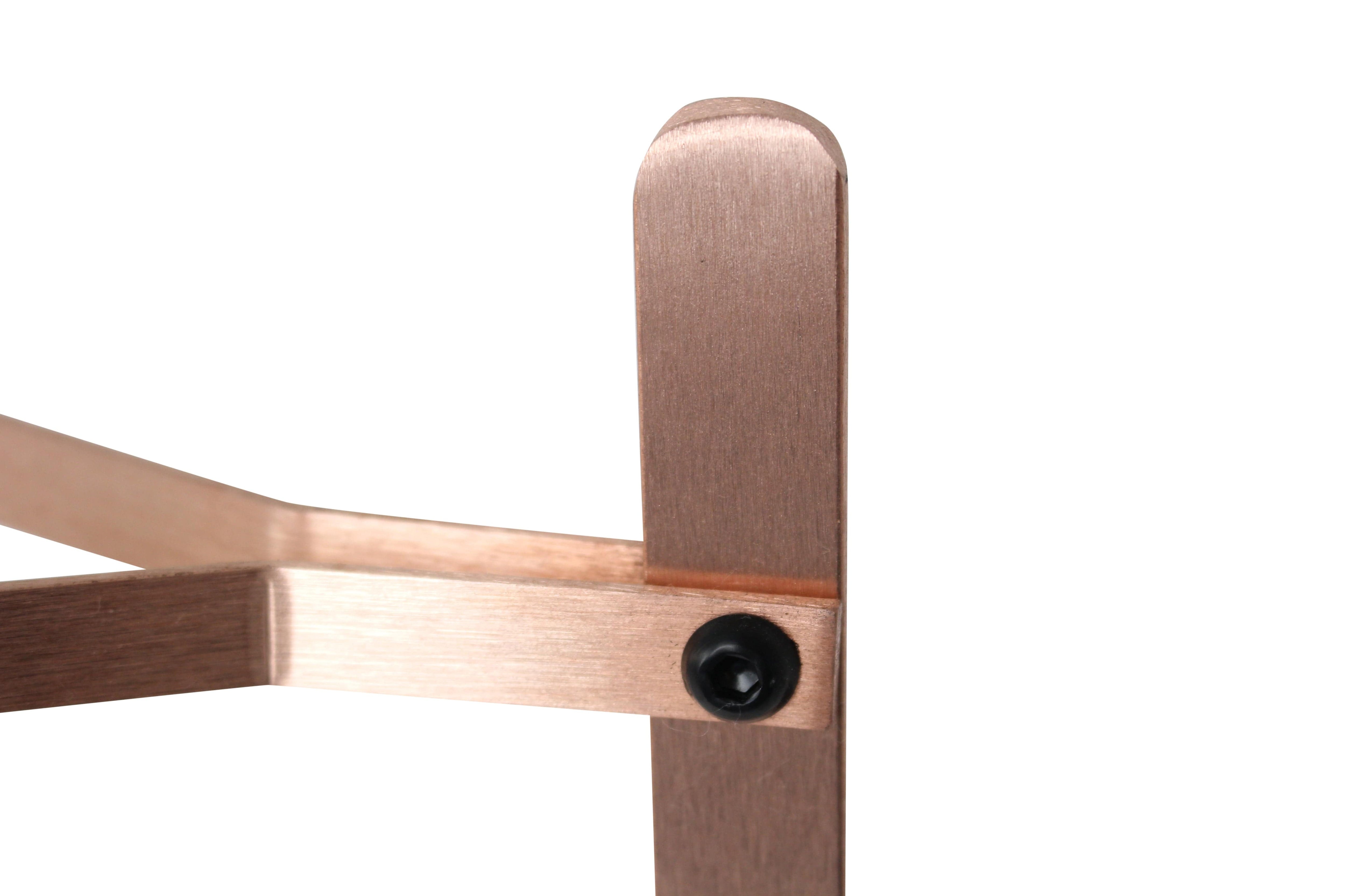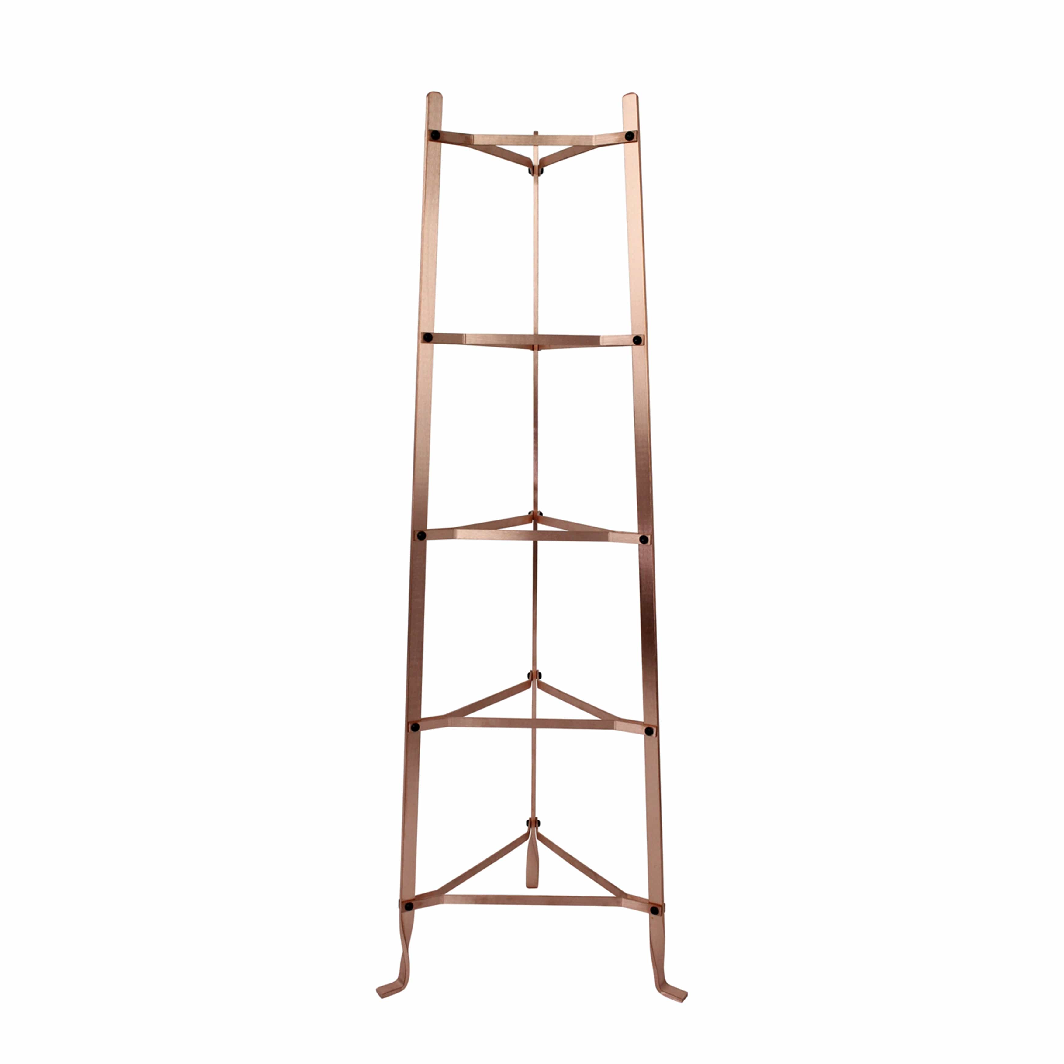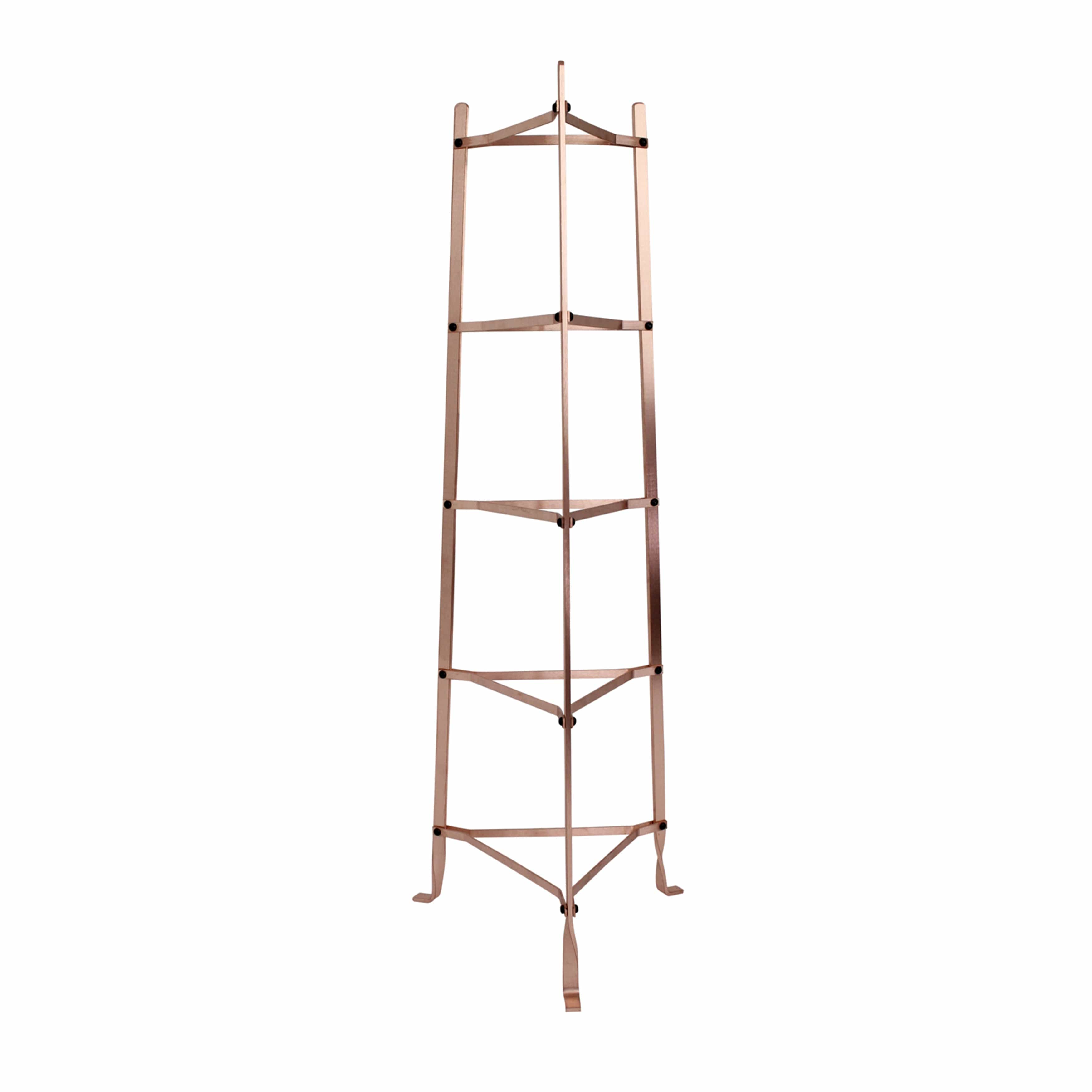 Handcrafted in the USA, this Enclume Gourmet 5-Tier Cookware Stand is one of our best selling stands. Beautifully designed, this tapered stand is 43.5" tall and incredibly versatile. It is great in the Kitchen, in Outdoor Living Spaces, or just about anywhere. It displays and organizes plants, cookware, bakeware, pots, pans, herbs, pictures or flowers. Use it as a pot rack or organizer when wall or ceiling space is not available. Also known as our Le Crueset or All-Clad stand by many consumers. You can also use it for heavy cast iron cookware such as Finex and Lodge. Each rack is forged from Solid Steel using traditional French metal working techniques. Optional Solid Alder Shelves (Item# SET5TA AL) are available and designed specifically to fit each of the shelves for added beauty and stability of your items. Assembly instructions with all hardware and tools are provided. It comes fully assembled and is cold riveted for strength and durability. The Brushed Solid Copper finish is beautiful and authentic, not powder coated, painted or plated. For custom sizes or questions, contact Enclume Design Products directly.
