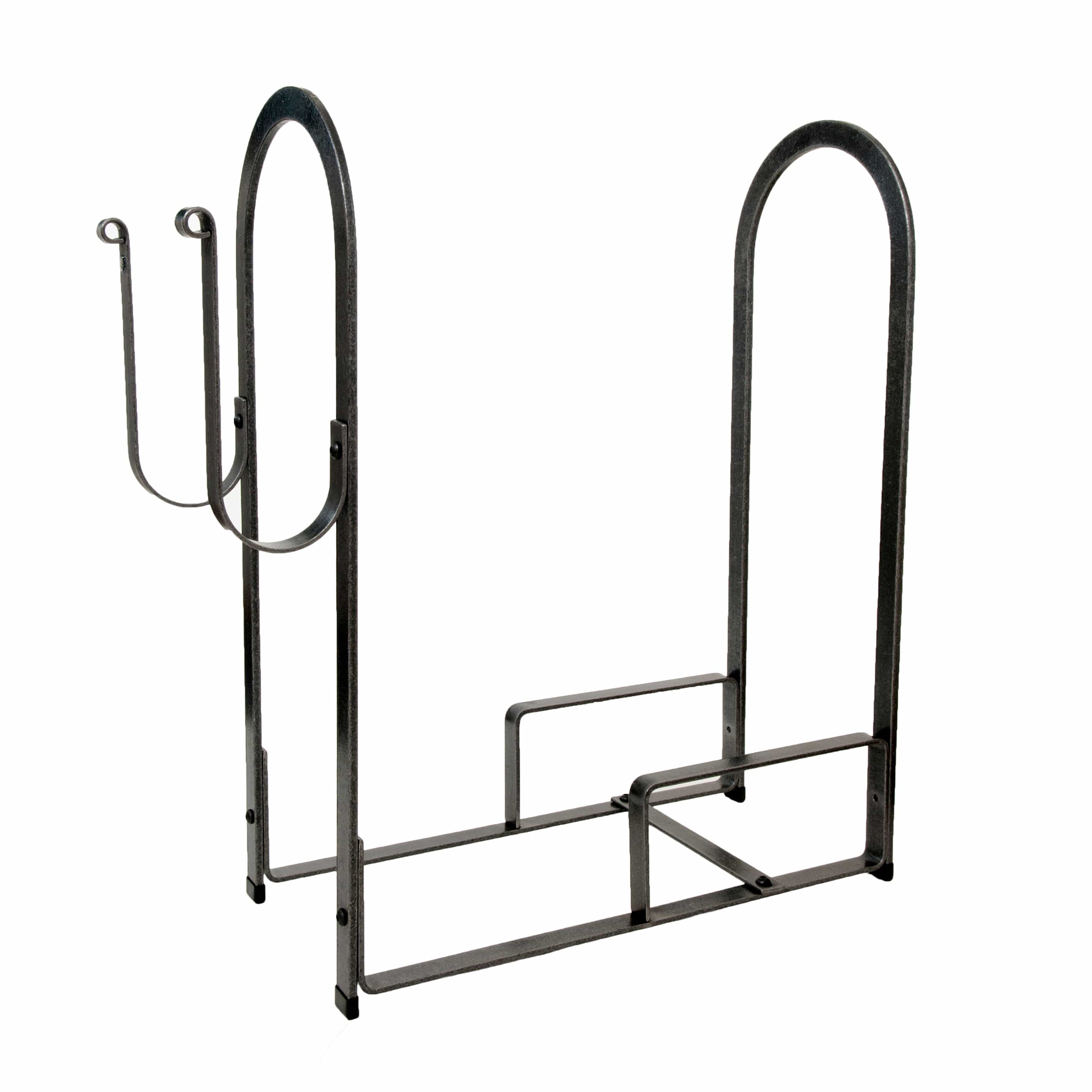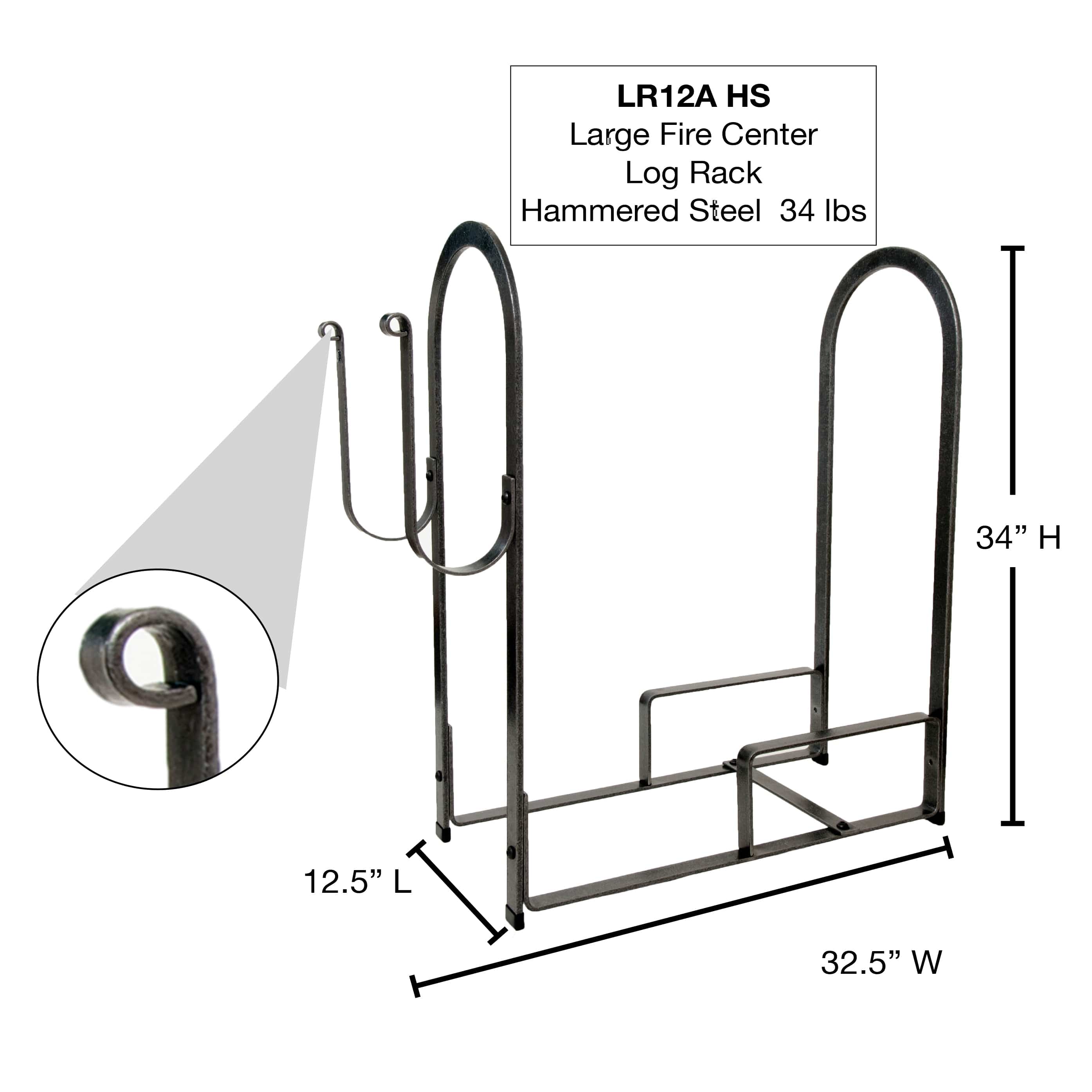 Handcrafted in the USA, this Enclume Large Fire Center Log Rack is a classic rack featuring our bias-bent arches, an Enclume Signature exclusive and hand forged rolled ends. Featuring generous areas for storage of firewood and kindling, with a newspaper shelf will hold all of your fire needs. Constructed of superior hot rolled, high carbon, steel, this original design has our Enclume Signature Hammered Steel finish and a protective clear coating to deliver our expected beauty, durability and strength for lasting value and enjoyment.